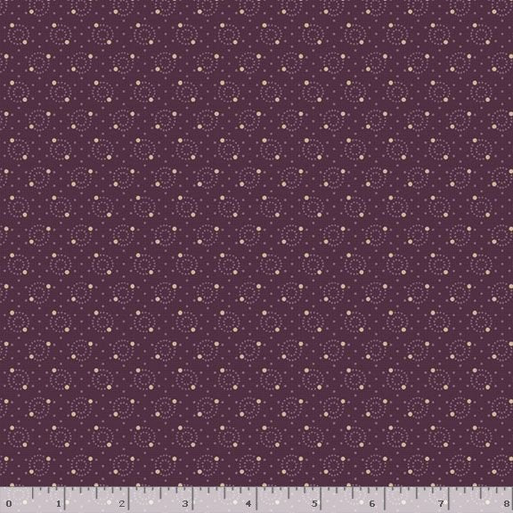 This fabric features a sophisticated design with a rich purple background adorned with a delicate pattern of small, evenly spaced circles in a lighter shade, creating a subtle yet elegant contrast. This fabric's classic design makes it versatile for various sewing projects, from fashion to home decor, ensuring a touch of refinement in every creation.